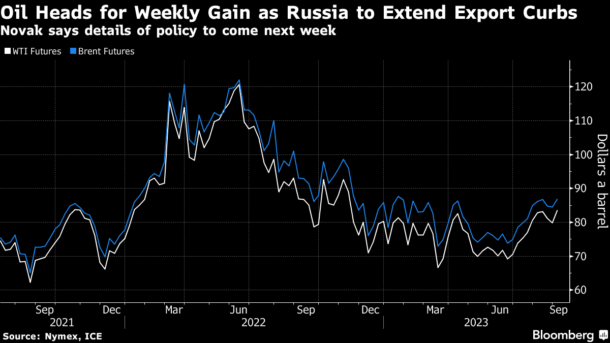 (Bloomberg) -- Oil prices surged above $85 as a monthslong effort by OPEC+ to reduce supplies gripped the physical market and China showed a new resolve to bolster its economy, a key engine of global crude consumption.