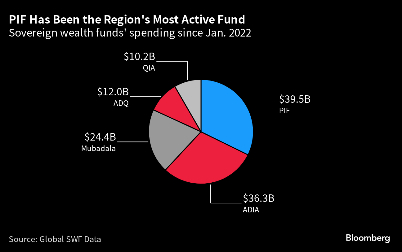 From the $500 billion futuristic city of Neom and deals upending the economics of global sport, to investments in mining, gaming and technology, the fund is leading the way on Saudi Arabia’s diversification efforts. Boosted by last year’s oil-price rally, the $760 billion PIF has outspent every regional wealth fund since the start of 2022.