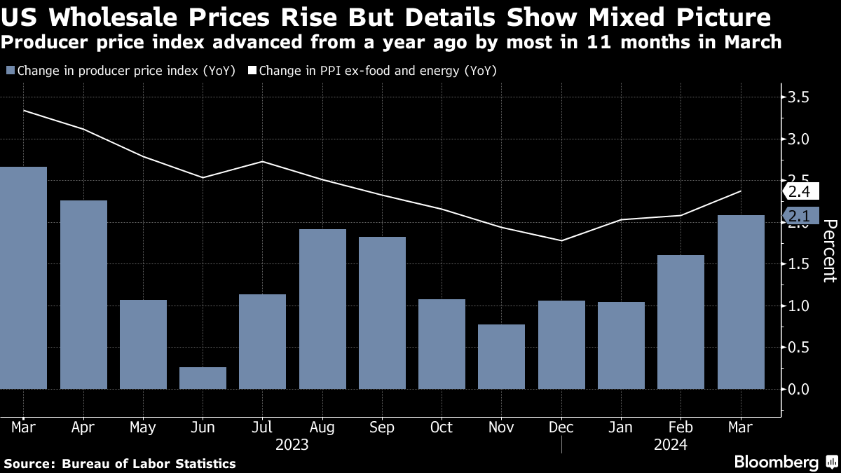 The 10-year Treasury yield fell about three basis points Friday after rising around 22 basis points in the previous two sessions. Data Thursday showed US producer prices in March increased less than forecast, after consumer-price growth came in hotter than expected earlier in the week.