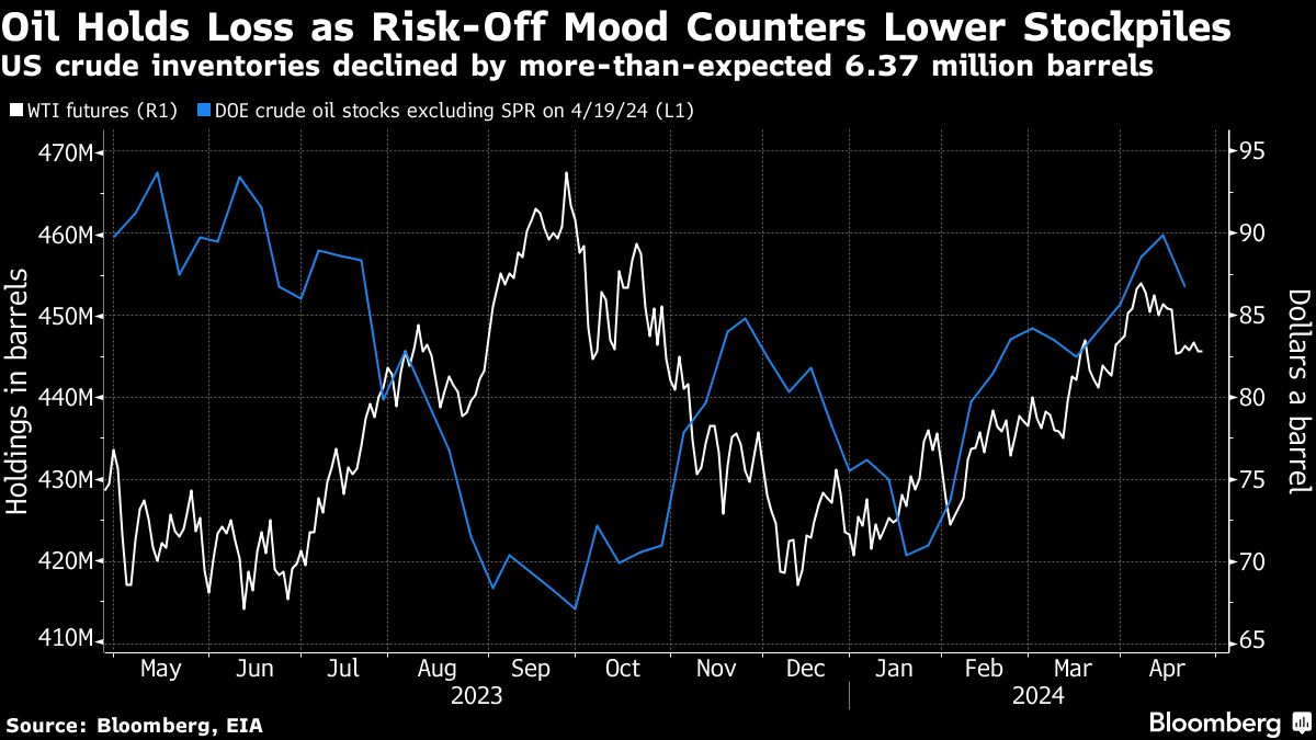Oil Holds Modest Loss as Risk-Off Tone Counters Lower Stockpiles