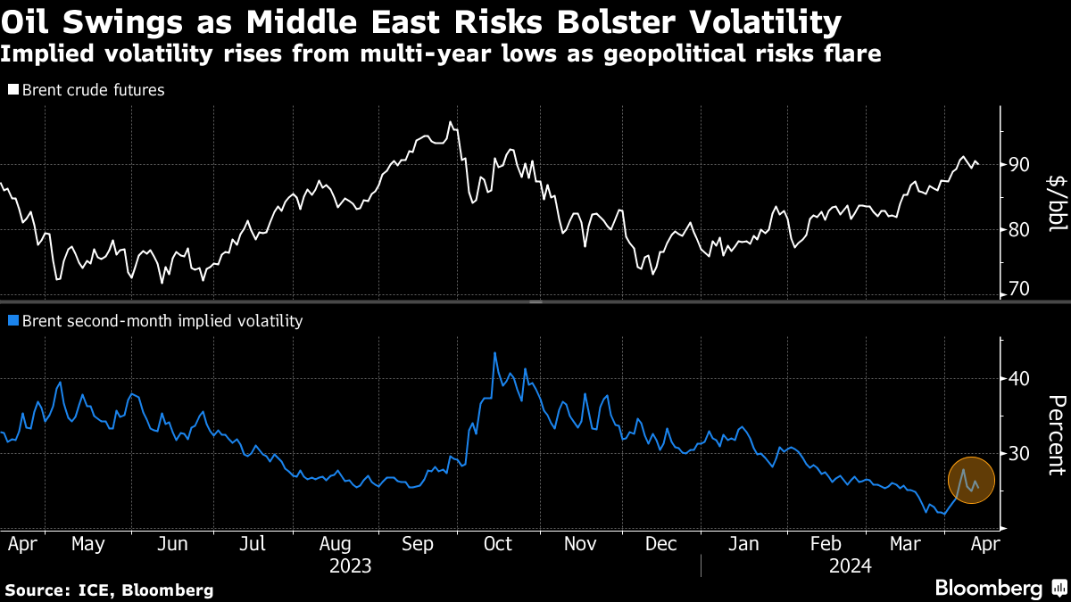 Oil Swings Near $90 With Risk of Iran Strike on Israel in Focus