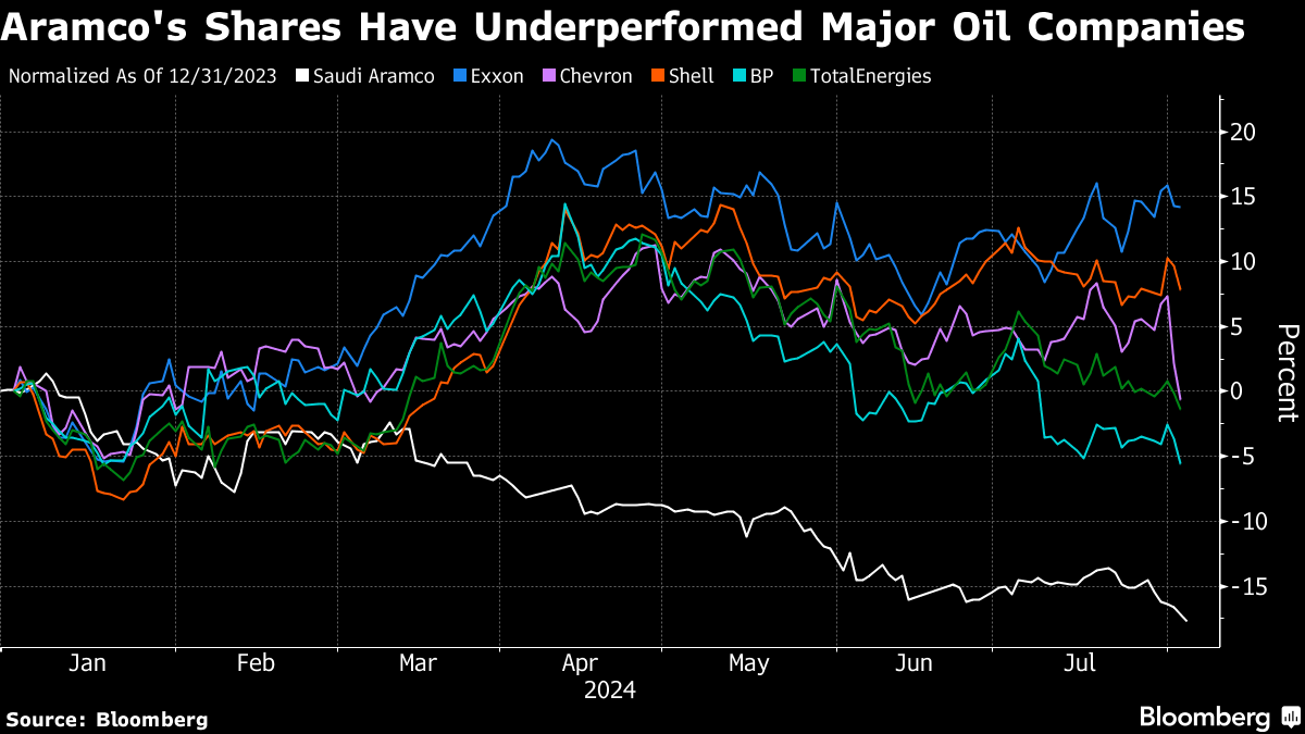 (Bloomberg) -- In a year when shares of some major oil producers have hit records, Saudi Aramco’s stock has gone the other way.