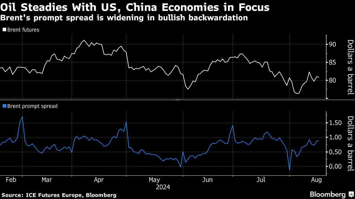 (Bloomberg) -- Oil was steady at the end of a turbulent week as the market weighed strong US economic data and a possible attack by Iran or its proxies on Israel against a lackluster Chinese demand outlook.