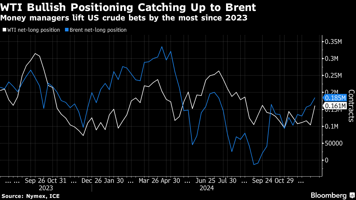 Money managers boosted their net-long position on West Texas Intermediate by 57,215 lots to 161,201 lots during the week ended Dec. 17, according to the Commodities Futures Trading Commission. That’s the biggest gain since September 2023.