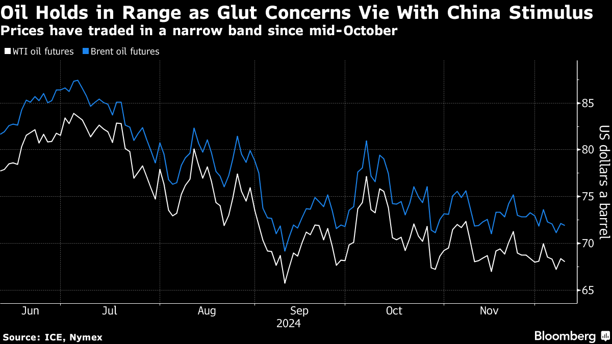 The oil market, however, is on track for a surplus next year, which has led to OPEC+ delaying the return of idled production. Crude futures have been stuck in a tight range since mid-October, buffeted by a series of bearish and bullish factors including Middle East tensions.