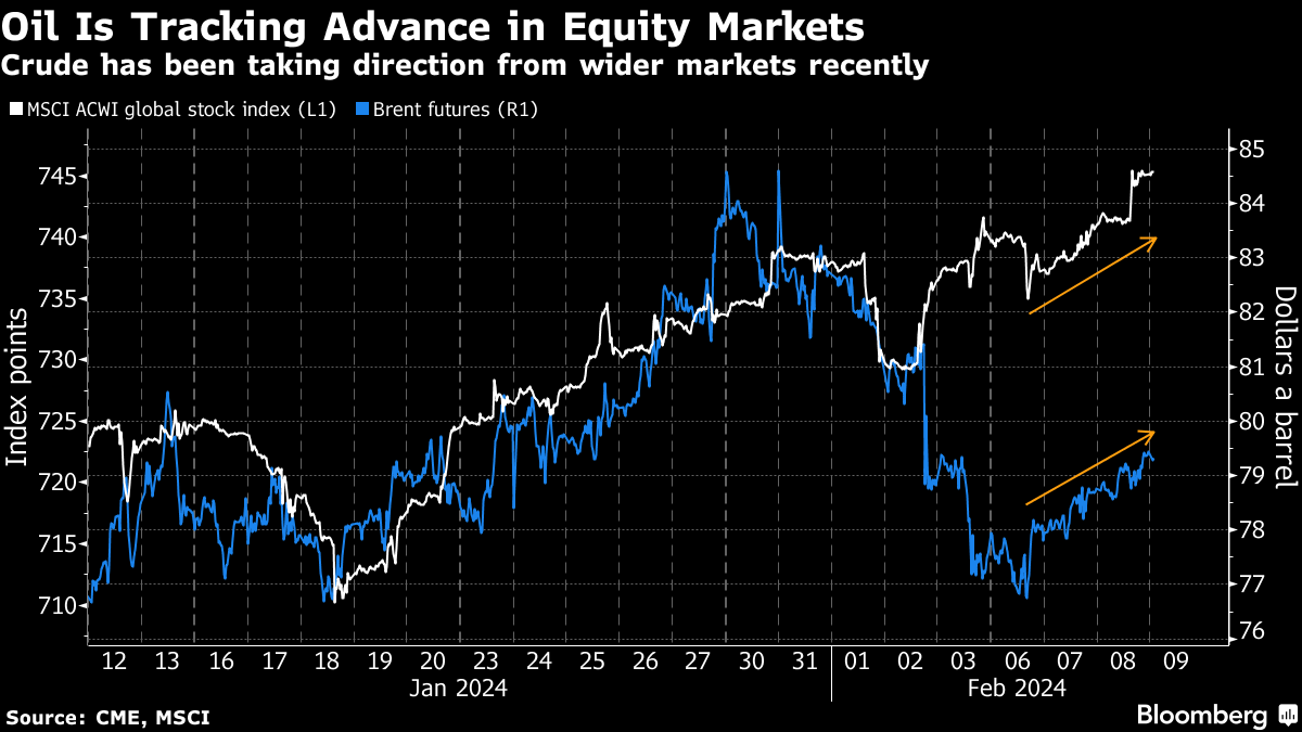 Brent crude traded above $79 a barrel after rising 2.4% over the prior three sessions, with futures potentially set for longest winning run since September. West Texas Intermediate was near $74. A rally in global stocks is helping to support appetite for risk assets, including crude, even as the Federal Reserve plays down the chance of imminent interest-rate cuts.