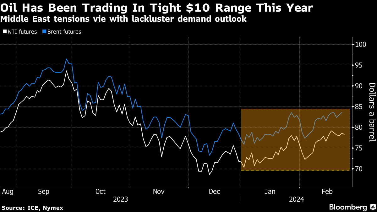 Attacks on commercial shipping in the Red Sea by Houthi militants have added to the risk premium for oil futures. The group and their Iranian backers are preparing for a lengthy confrontation with the US and its allies around the waterway — regardless of how the Israel-Hamas war plays out.