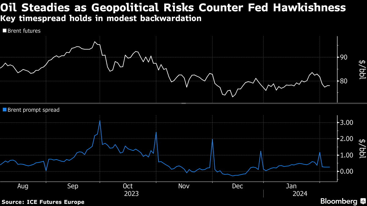 The attacks and threats of retaliation in the Middle East have increased the risk premium on crude, which has just had its worst week since October. That bearishness was driven by talks to pause the four-month Israel-Hamas war, signs of robust supply, and lackluster demand in top importer China.