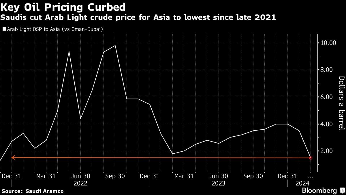 (Bloomberg) -- A substantial cut in official oil pricing to Asia by OPEC+ leader Saudi Arabia has reinforced signs of softer physical market in the key region.
