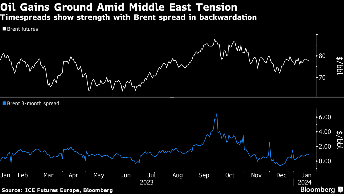 Brent crude rose above $78 a barrel, while West Texas Intermediate topped $73. In Yemen, the US struck more than a dozen Houthi missile launchers in its latest response to the Tehran-backed group’s repeated attacks on shipping. Elsewhere, Pakistan carried out retaliatory strikes in Iran.