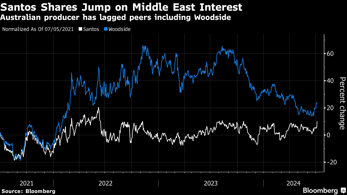 “I would be pleasantly surprised if there was an approach,” said Matthew Haupt, a portfolio manager at Wilson Asset Management, which holds Santos shares. “Santos is an attractive target for other parties, so it’s in play, but not sure it’s the Middle East players.”