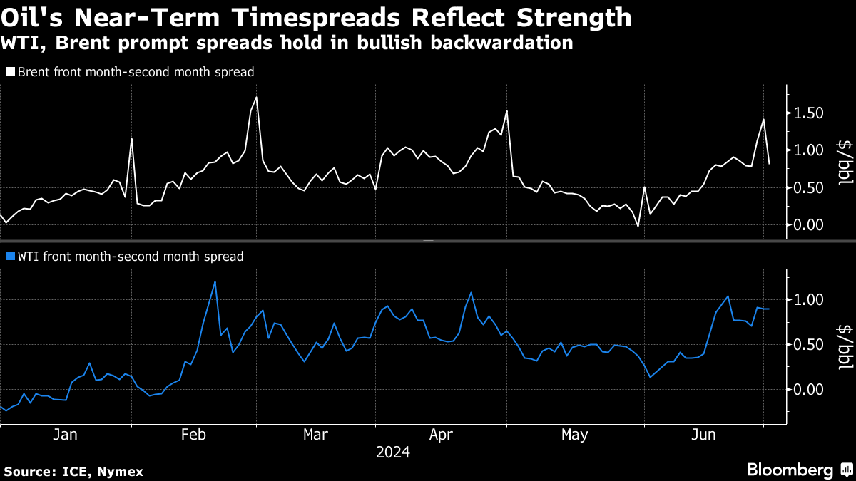 Crude remains higher this year, with the latest upward move spurred by OPEC statements that its plans to revive production depend on market conditions. While spreads for both Brent and WTI are in a backwardated structure that suggests tightness and money managers continued piling into oil, swelling US inventories have recently helped pare some of the optimism.