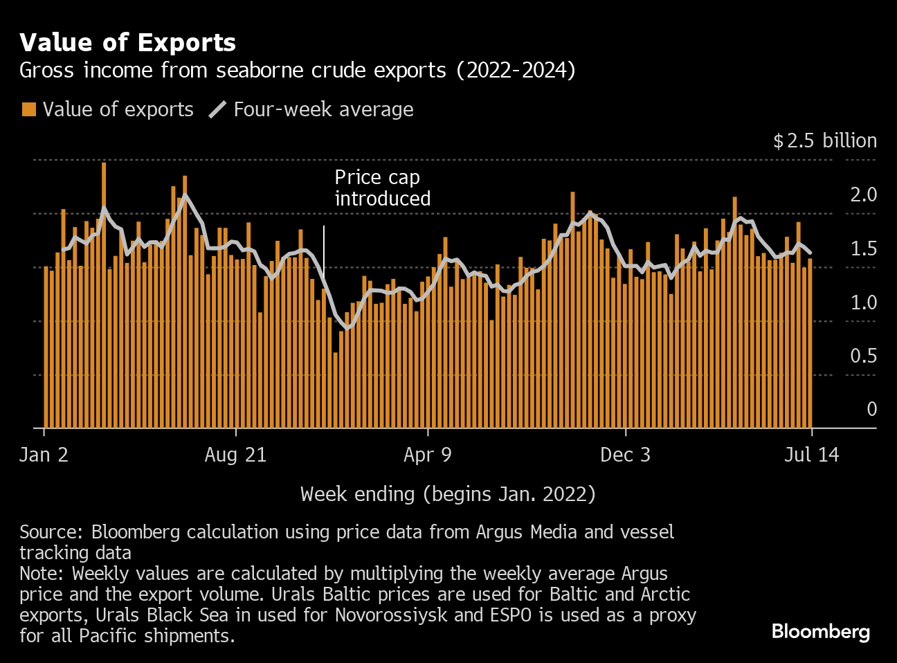 This story forms part of a weekly series tracking shipments of crude from Russian export terminals and the gross value of those flows. The next update will be on Tuesday, July 23.