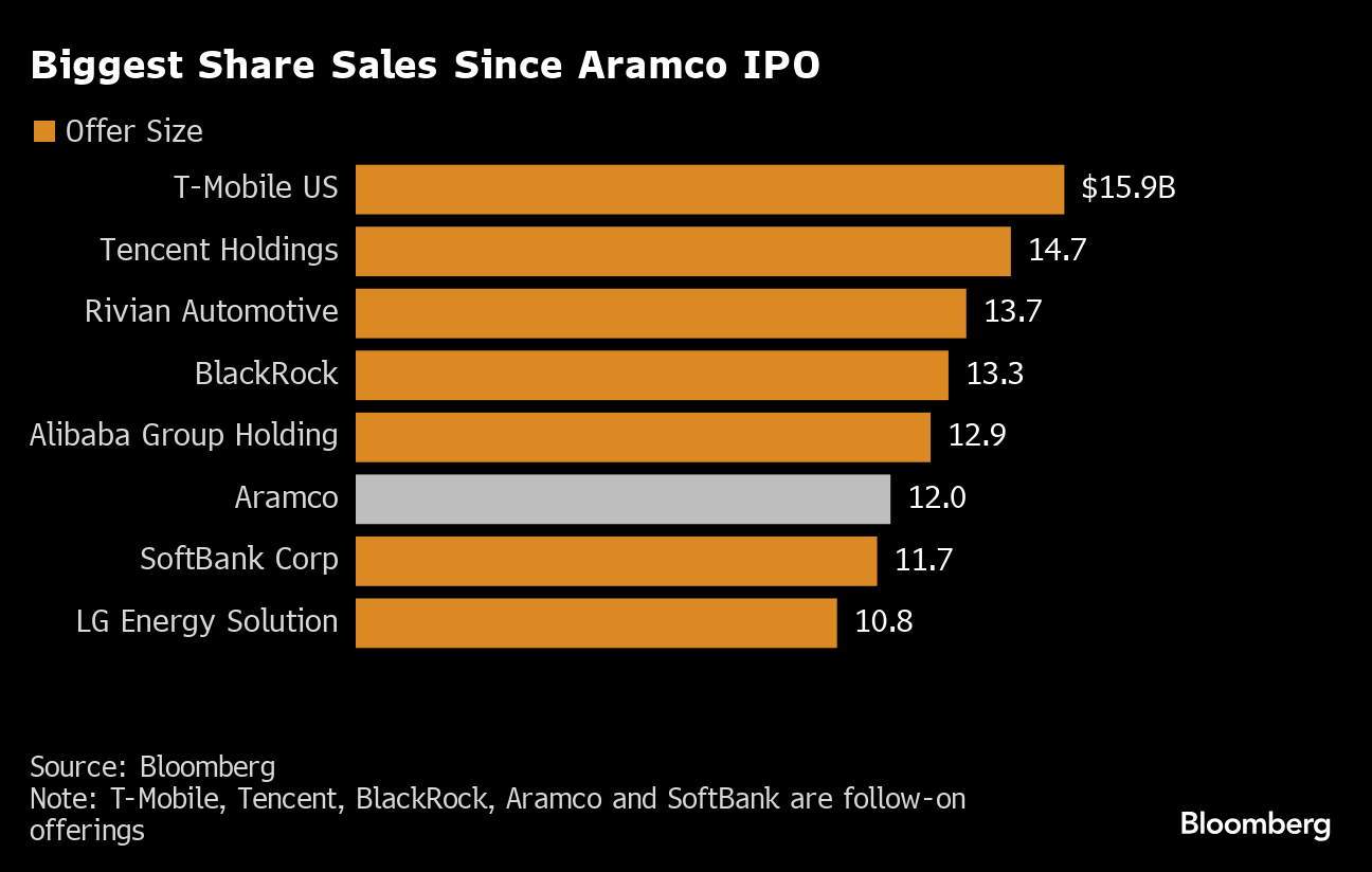 Saudi Arabia will sell 1.545 billion shares, representing a 0.64% stake, at a price range of 26.70 to 29 riyals. It will take orders from Sunday through to Thursday, and the final pricing will be decided on Friday.