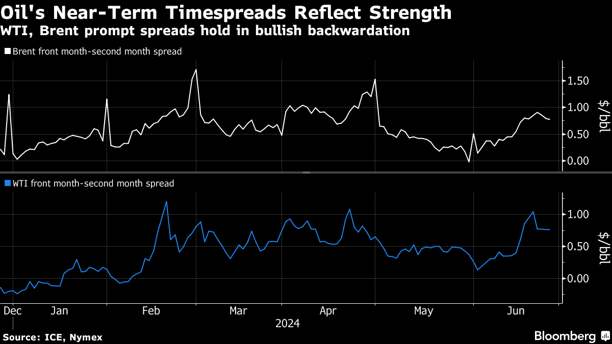 Prompt time spreads for Brent and WTI have widened in a bullish backwardation structure this month, and money managers have recently increased their bets on a range of products including ICE gasoil, Europe’s diesel benchmark.