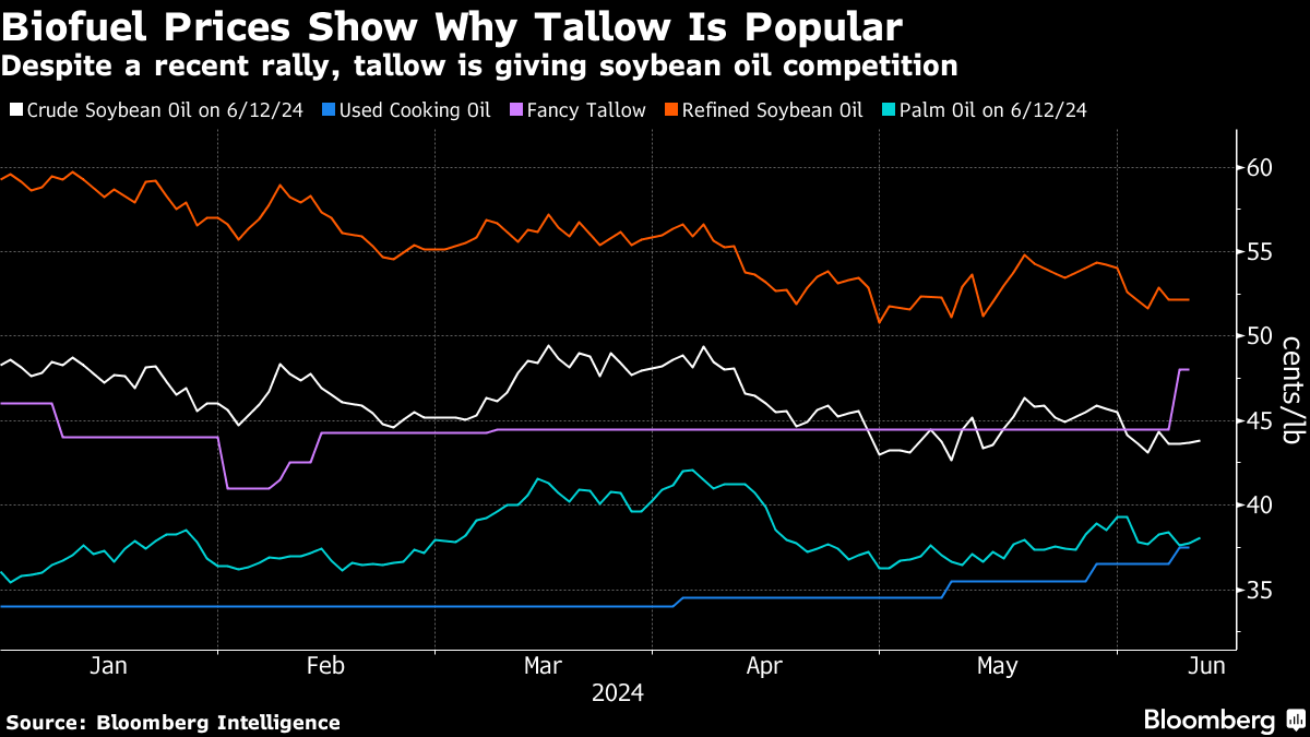 “Brazilian tallow has been folded into the US biofuel feedstock mix, in part due to Darling Ingredients’ integration of FASA,” Bloomberg Intelligence analyst Brett Gibbs said.