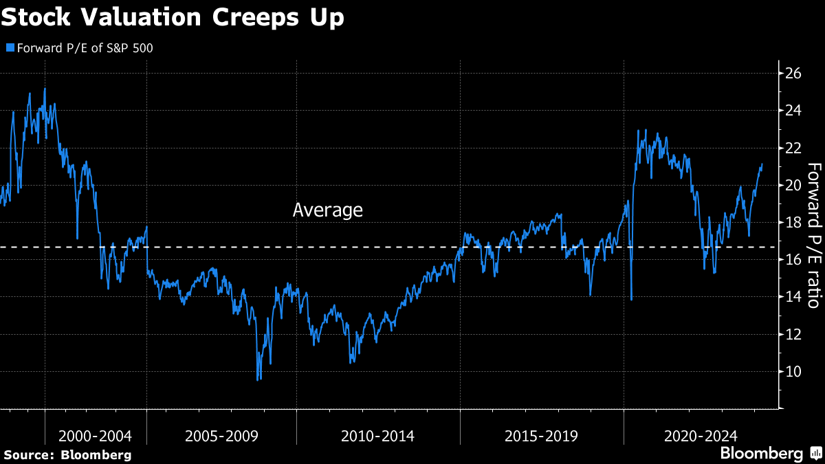 US equities wavered after a record-breaking run that drove the S&P 500 up about 10% this year. In an almost broad-based weekly advance, the gauge climbed more than 2% in the span. The market resilience has left strategists scrambling to update their targets, while spurring calls for a consolidation or a pullback.