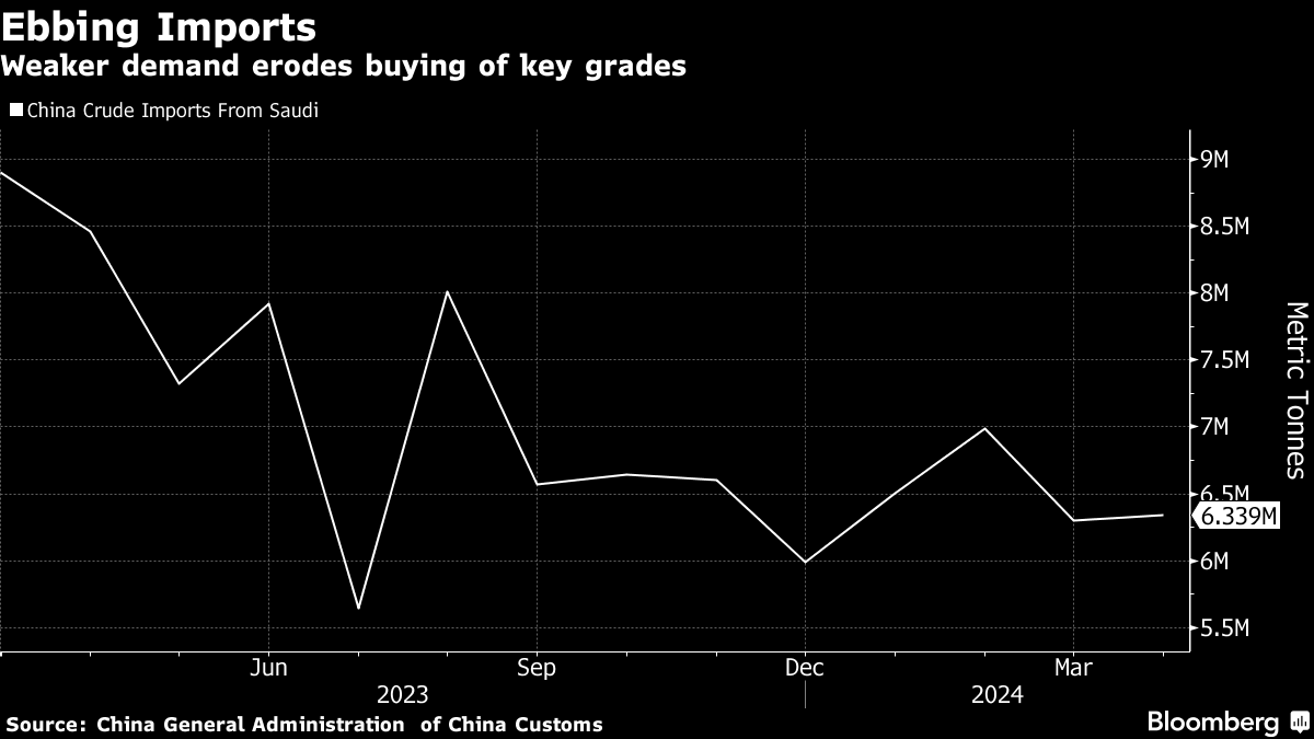 There’s been a visible impact in oil flows to the Asian giant. The number of supertankers headed to China fell to the lowest in seven weeks in the most recent tracking data compiled by Bloomberg. One refiner with a long-term contract with Saudi Arabia scaled back purchases for June.