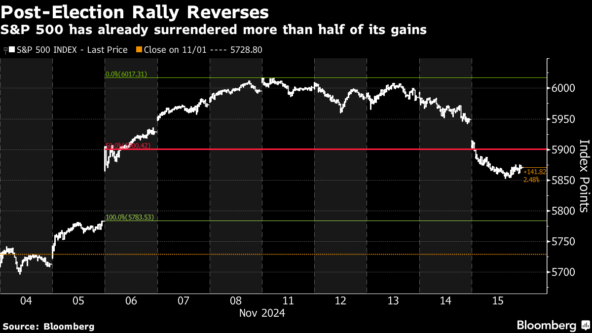 US Stocks Erase More Than Half Post-Election Gains: Market Wrap