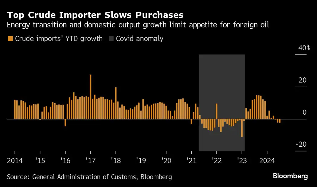 Of all the gloomy topics at Asia’s biggest oil gathering of the year, the toughest to avoid will be China — and the question of whether cooling consumption is masking a more permanent decline in fossil fuel use as clean energy takes hold.