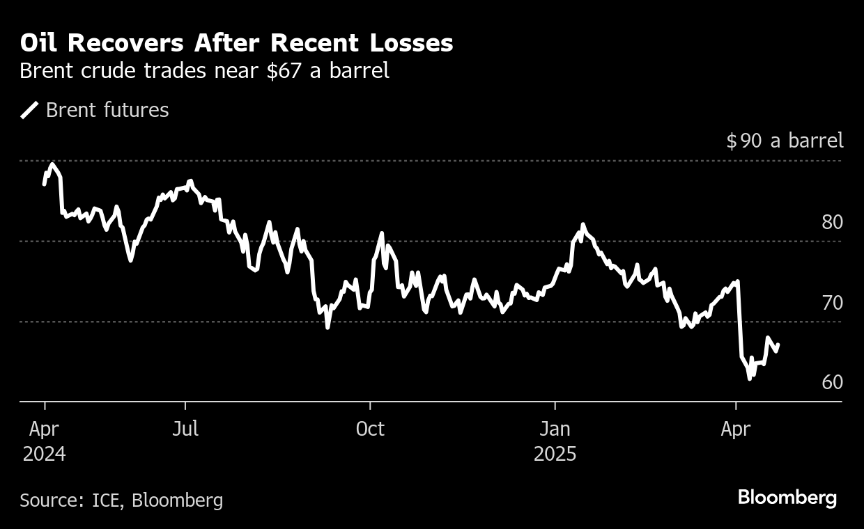 Brent traded near $67 a barrel after sliding 2.5% in the previous session, the most in more than a week. Crude’s partial recovery was aided by a bounce-back in US equity futures.