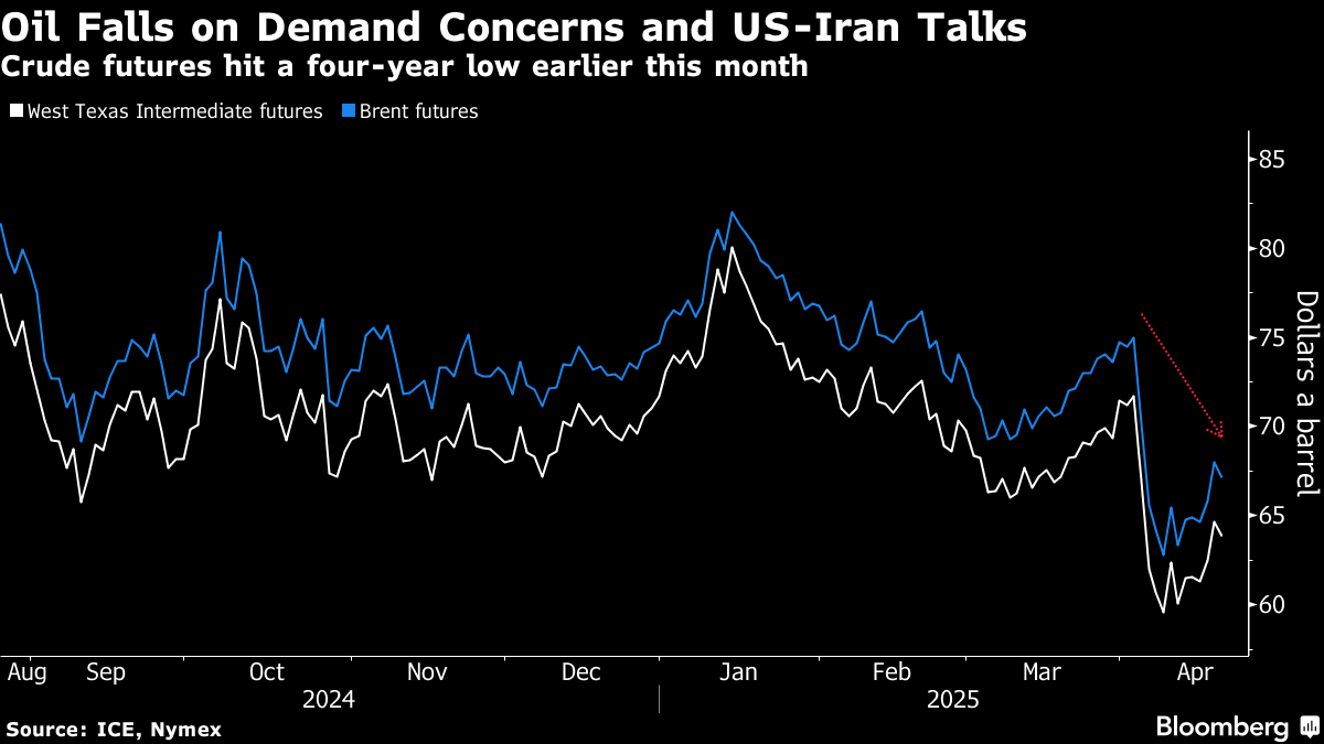 Oil has declined sharply this month, touching a four-year low at one point, driven by investors’ fears that the onslaught of tariffs and counter-levies between the US and its biggest trading partners including China will sap crude demand. The drop has been compounded by an OPEC+ decision to bring back production at faster-than-expected pace, reviving concerns about a glut.