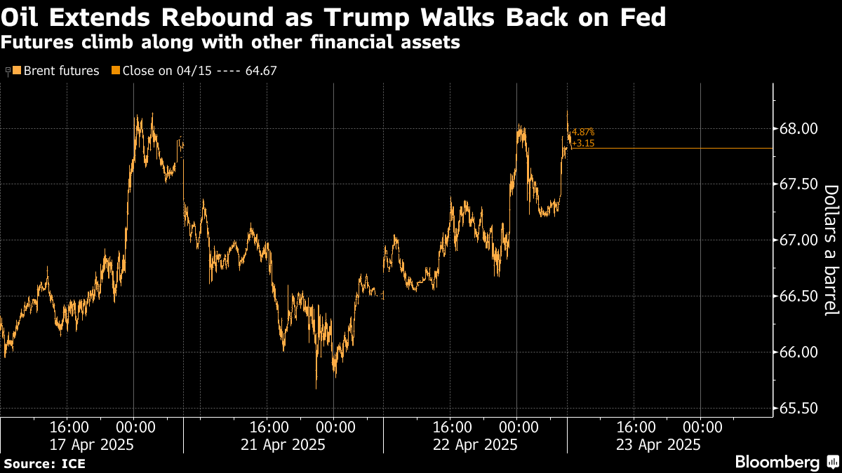 “Crude has taken in the tailwinds from the reduction in cross-asset volatility and the general feeling that we’re averting a policy mistake in Trump’s push for Powell’s early removal,” said Chris Weston, the head of research at Pepperstone Group Ltd. in Melbourne.