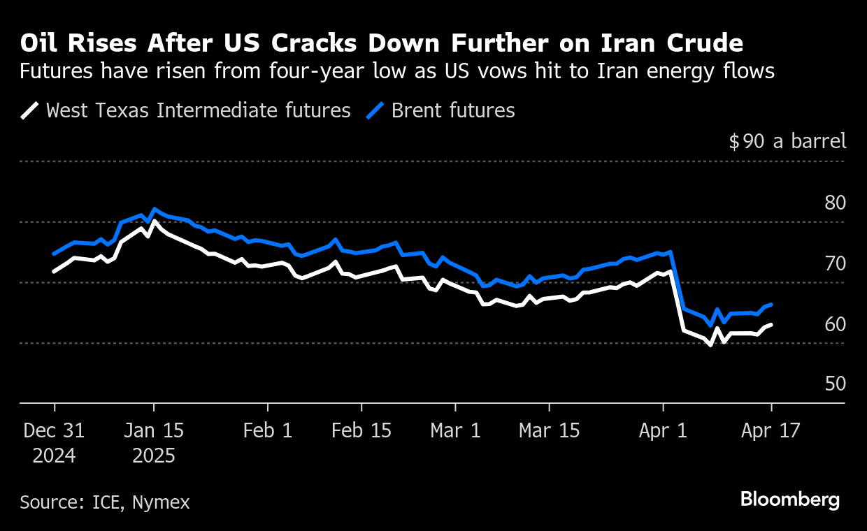 Brent crude climbed above $66 a barrel after advancing almost 2% on Wednesday, putting futures on track for their first weekly gain this month. West Texas Intermediate traded near $63. Treasury Secretary Scott Bessent said the US would apply maximum pressure to disrupt the OPEC member’s oil supply chain, as his department sanctioned a second Chinese refinery accused of handling crude from the Islamic Republic.