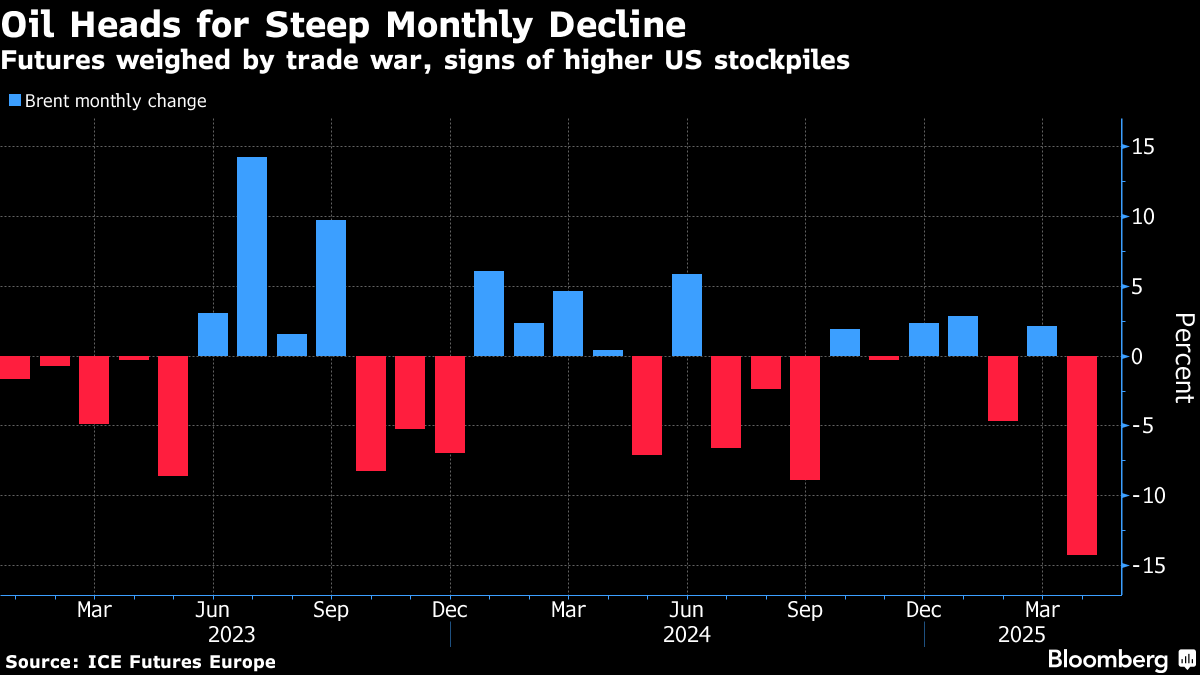 Oil Set for Historic April Selloff as Trade War Darkens Outlook