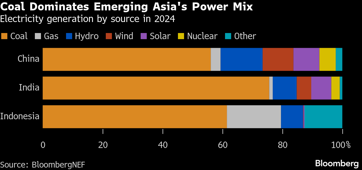 The region has struggled to wean itself off a fossil fuel that remains a cost-competitive source of stable power thanks to its abundance, and because of the need to pair clean energy sources with batteries and robust grids. Asia’s fleet of 2,000 coal plants is also decades younger than that of Europe and the US, and retiring it early requires financial support to end power-purchase agreements.