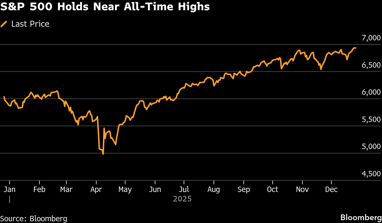 (Bloomberg) -- The post-Christmas session on Wall Street saw stocks fluctuating near their all-time highs as recent signs of economic resilience reinforced positive expectations for corporate profits.