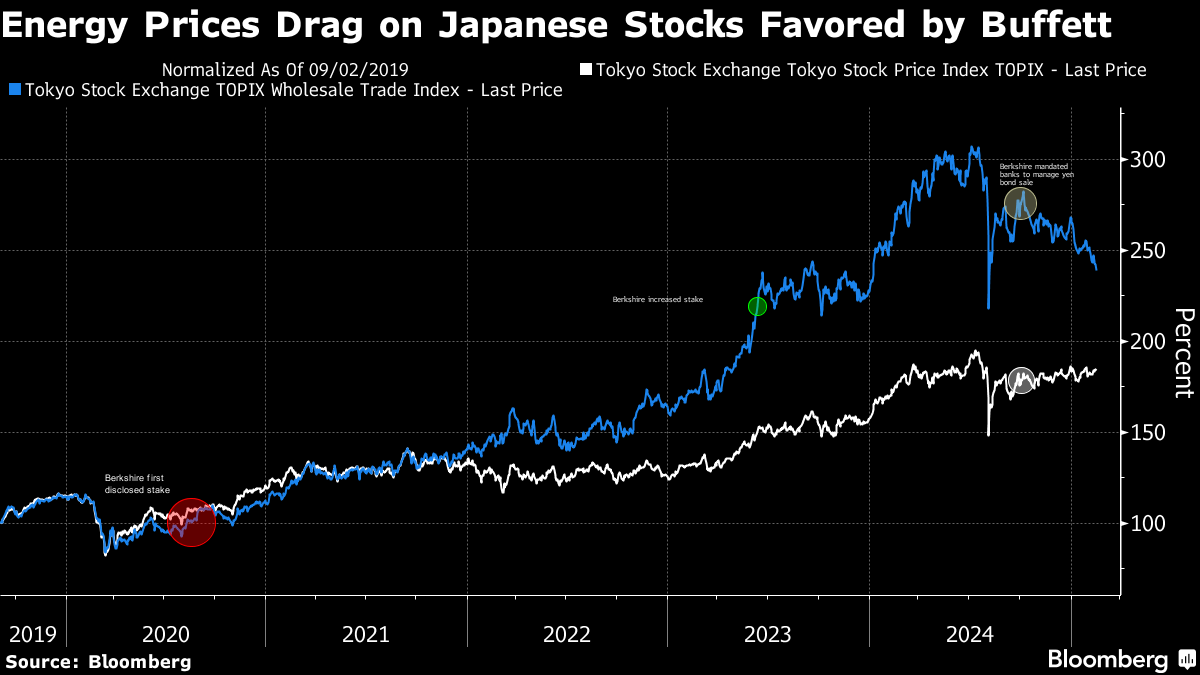 This means that investors will be scouring Buffett’s comments for any signs of succor for trading companies, which have been dragged down by falling energy costs on pressure from Donald Trump to cut oil prices. The Topix Wholesale Trade index has dropped about 12% since the US election, underperforming the broader measure of stocks.