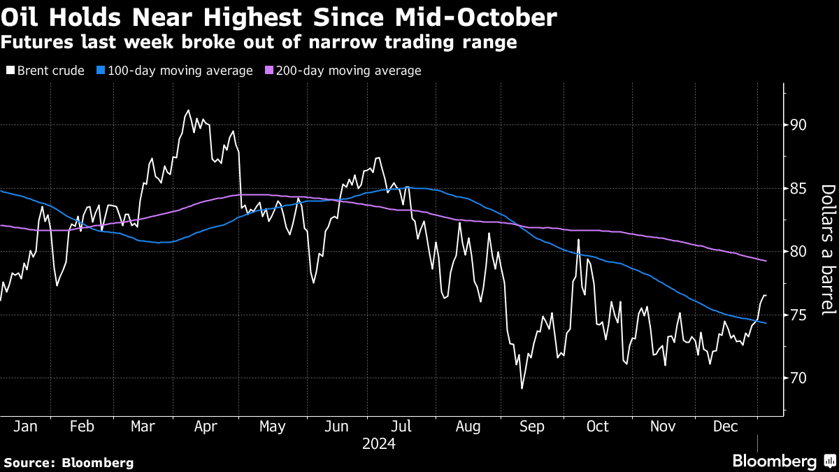 Oil last week followed bullish drivers — including falling US stockpiles and increased unpredictability as Donald Trump prepares to return to the White House — to break out of a narrow range it had traded in since mid-October. That optimism is being pared by expectations for a glut, the possible revival of idled OPEC+ production and lackluster demand from top importer China.
