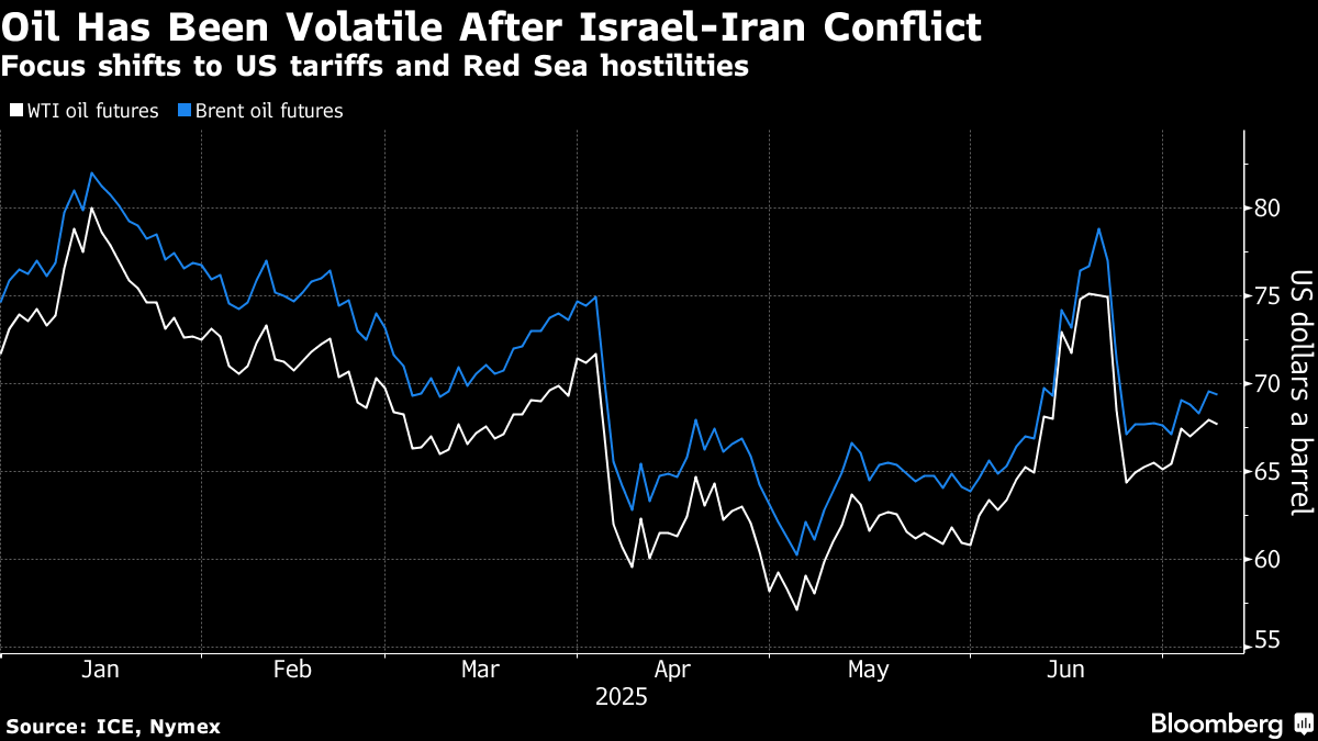 The oil market has been volatile in recent weeks after the war between Israel and Iran, with a fragile truce now in place, but tensions in the Middle East are starting to rise again following fresh attacks in the Red Sea. A second vessel was targeted near Yemen on Monday, hours after Iranian-backed Houthis claimed responsibility for an earlier attack on a ship in the same area.