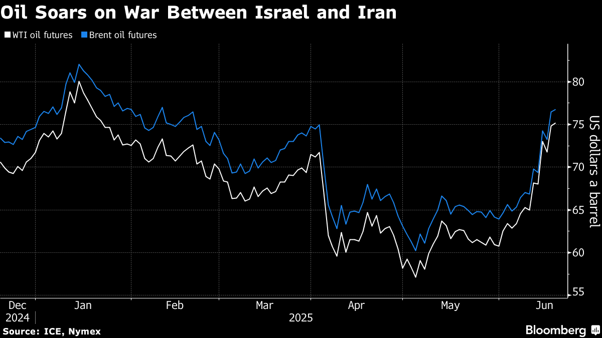 Oil extended its advance over the past week to about 10% after President Donald Trump on Tuesday demanded Iran’s “UNCONDITIONAL SURRENDER” and warned of a possible strike against the country’s leader — Ayatollah Ali Khamenei — in a social media post. US weapons are seen as crucial to achieving a more complete destruction of the Islamic Republic’s atomic program than anything Israel can do alone.