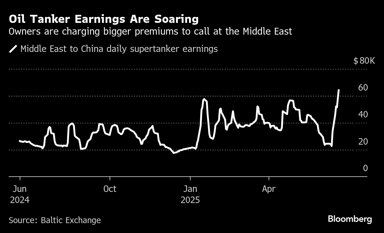 The cost of hiring a ship to carry crude from the Middle East to China has jumped close to 90% since before Israeli attacks began. Earnings for vessels carrying fuels like gasoline and jet fuel have also leaped, as have insurance premiums.
