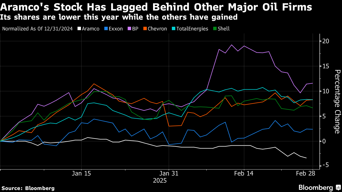Saudi Aramco expects the total payout to be about $85 billion in 2025, compared with $124 billion for last year, it said in a statement Tuesday. The distribution has been in focus for investors and economists alike with the level of the payment likely to determine how much more the Saudi government would need to borrow to fill its budget deficit.