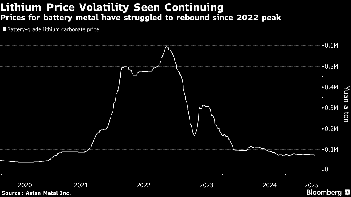 Lithium’s roller-coaster ride in recent years highlights the volatility of the green technology amid an energy transition that has faced setbacks. A massive expansion of global mining capacity is also weighing on the industry. Lithium is currently trading around 73,000 yuan a ton in China, down from its peak less than three years ago of nearly 600,000 yuan.
