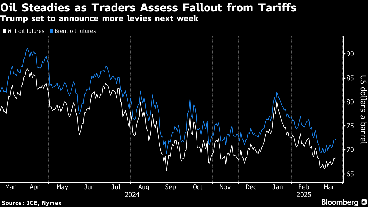 Brent traded below $72 a barrel after rising 2.2% last week, while West Texas Intermediate was near $68. Donald Trump’s wave of so-called reciprocal levies on April 2 are set to be more targeted, according to aides, rather than the barrage the US president has occasionally threatened.