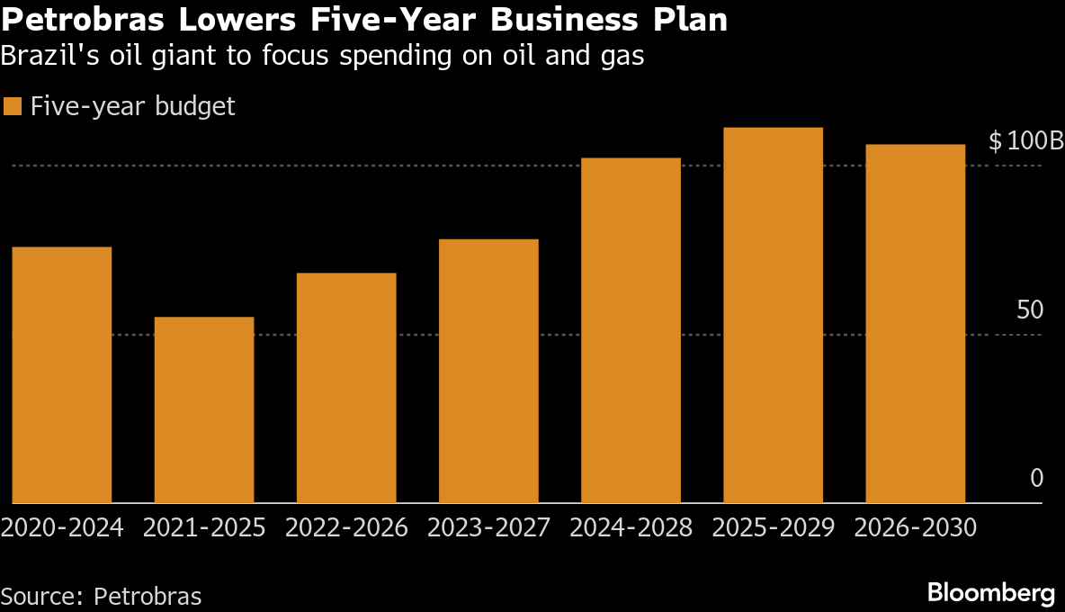 Petroleo Brasileiro SA, as it is formally known, will direct $91 billion of the total capital expenditure to projects under implementation, of which $10 billion will still need budget confirmation subject to a financing analysis. The rest is still under analysis “with a lower degree of maturity,” it said in a filing on Thursday.