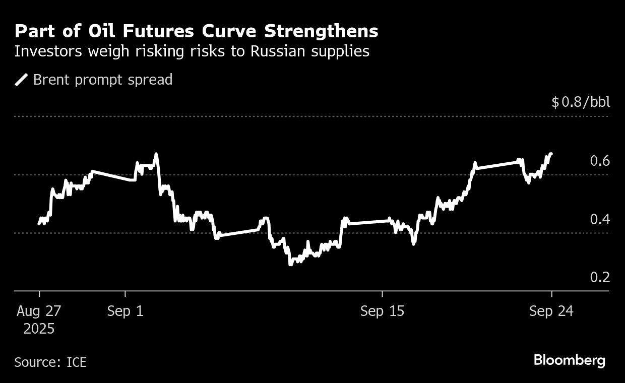 Brent rose toward $68 a barrel after gaining 1.6% on Tuesday, while West Texas Intermediate was near $64. Trump said he thought NATO nations should shoot down Russian aircraft that violated their airspace and struck a more sympathetic tone on Ukraine’s chances of winning the war. He also reiterated the need for Europe to cut its energy purchases from Moscow.