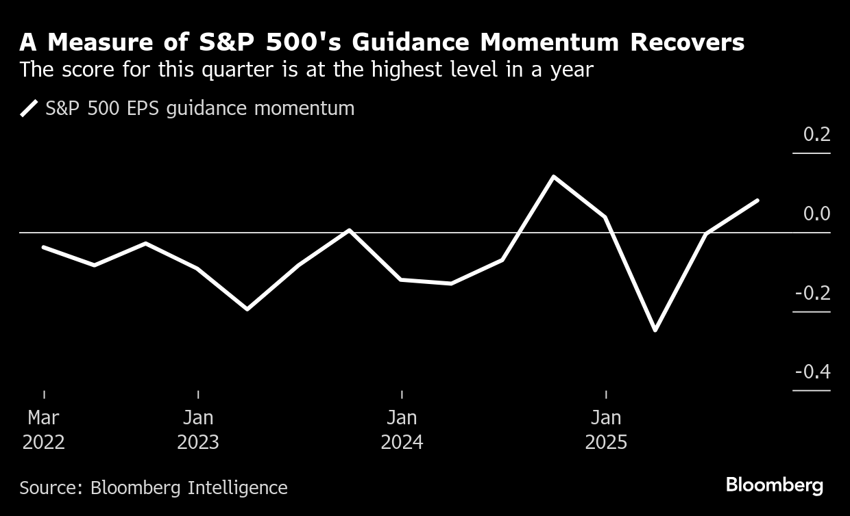 Among the companies in the S&P 500 that provided guidance for their third-quarter results, more than 22% were expecting to beat analysts’ expectations — the highest reading in a year, according to data compiled by Bloomberg Intelligence.