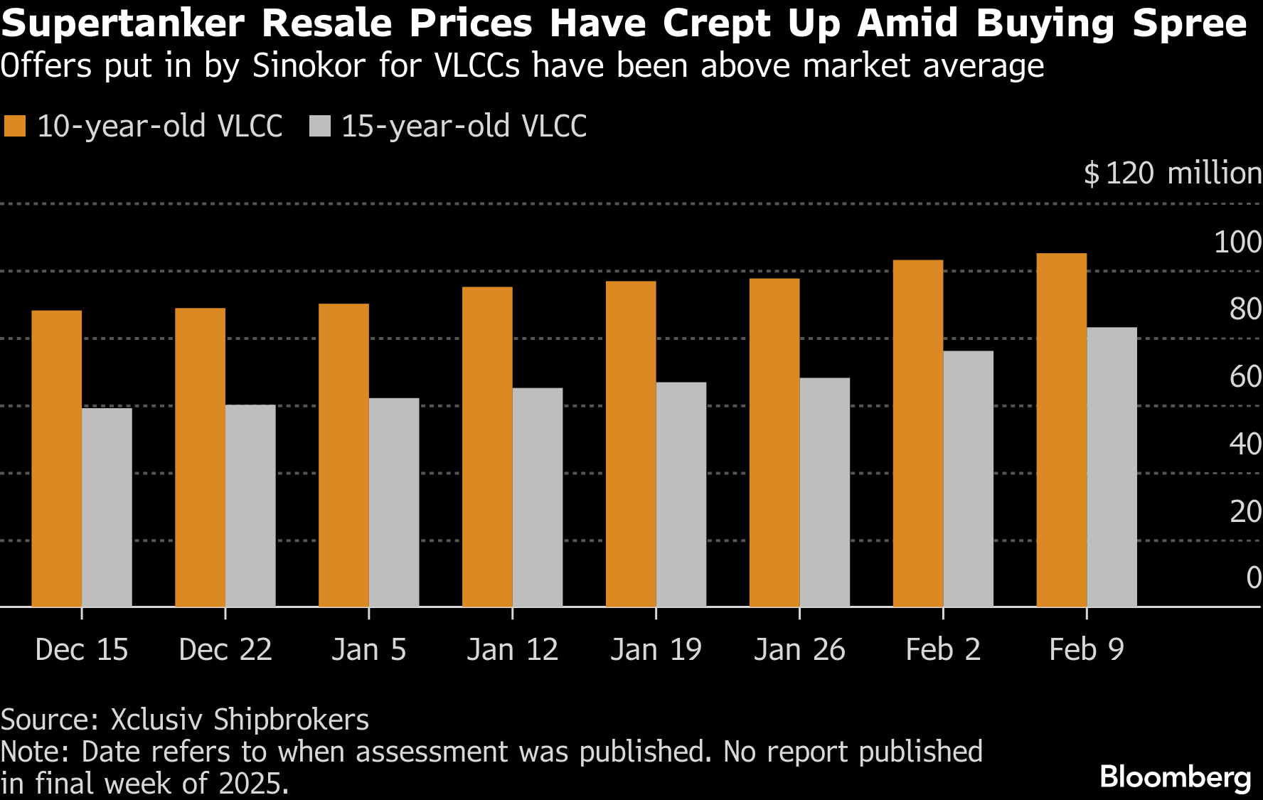 Sinokor’s purchases have largely been focused on vessels that are 10 years and older, and the resale price for older supertankers has been creeping up in recent weeks.