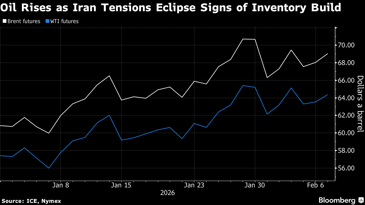 Oil Rises as Tensions Over Iran Eclipse Signs of Inventory Build