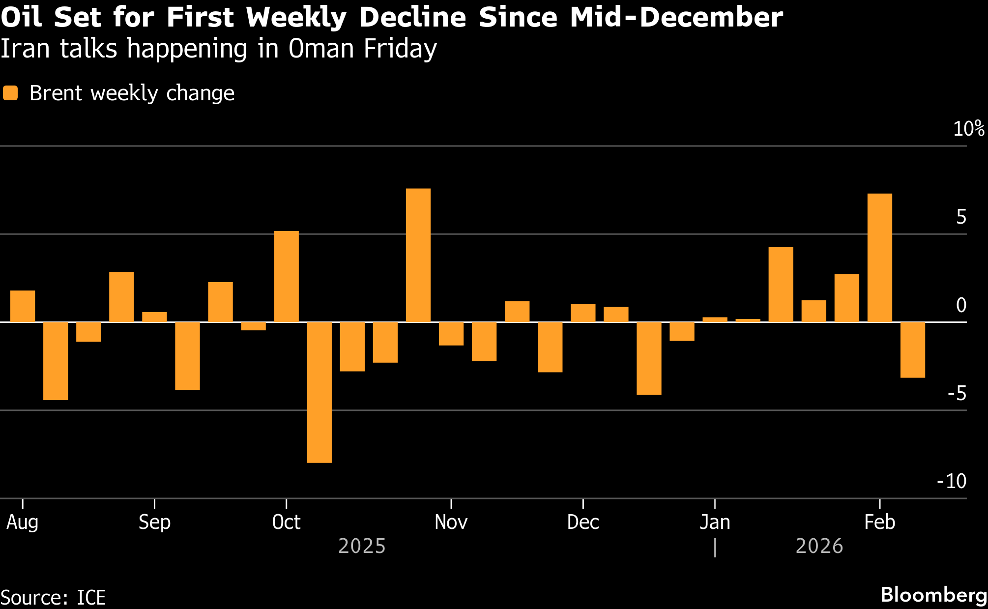 Still, futures in New York are on track for their first weekly retreat since mid-December as the US-Iran talks helped allay concerns over a broader conflict in the region.