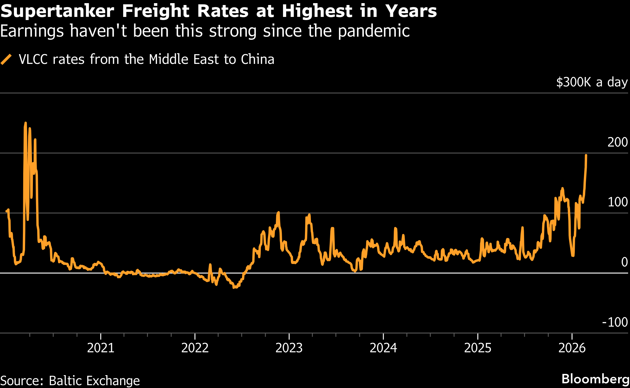 The bookings come as benchmark supertanker earnings rise to the highest level in years, buoyed by a South Korean owner snapping up tankers. Rates are also climbing as traders fret about potential conflict between the US and Iran, which risks impacting oil flows through the Strait of Hormuz, a chokepoint through which about a fifth of the world’s oil travels.