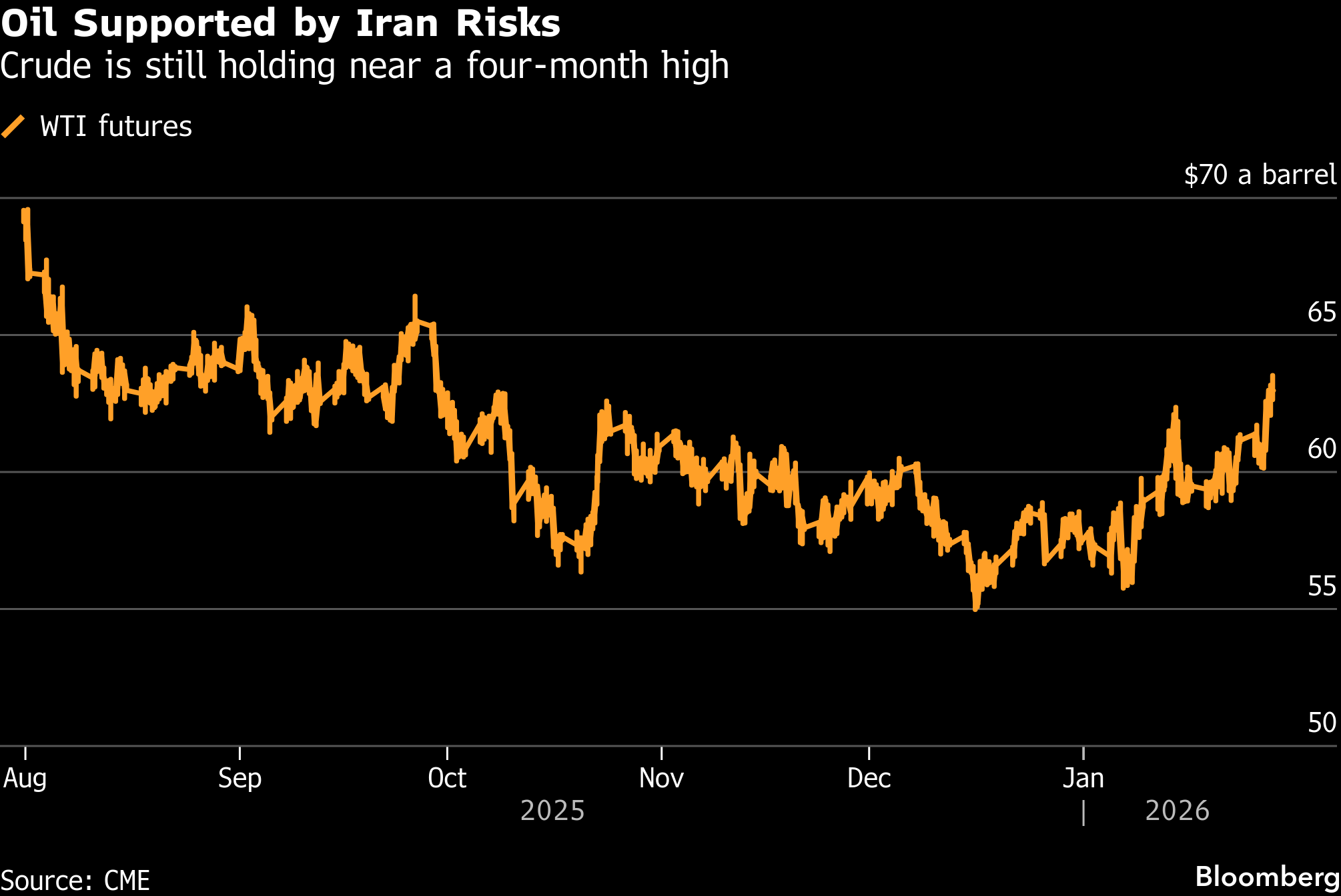 West Texas Intermediate futures settled above $63 a barrel after Trump’s post, the highest level since the end of September, extending a 2.9% jump in the previous session.