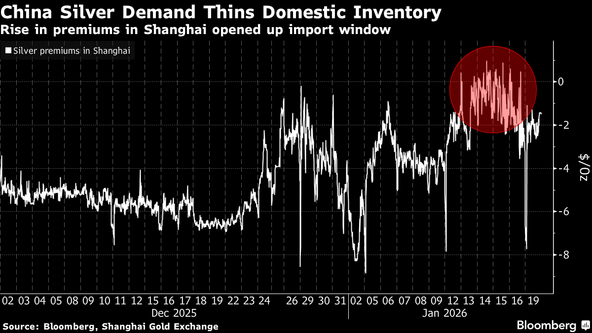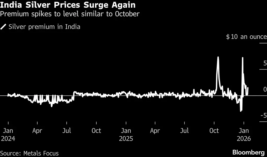A short squeeze last October showed how local supply constraints can quickly go global, especially for a less-liquid metal like silver. At the time, Indians loading up ahead of the Diwali festival, along with tariff fears that kept supplies locked up in the US, drained liquidity in London and pushed benchmark silver prices to the highest since the 1970s.