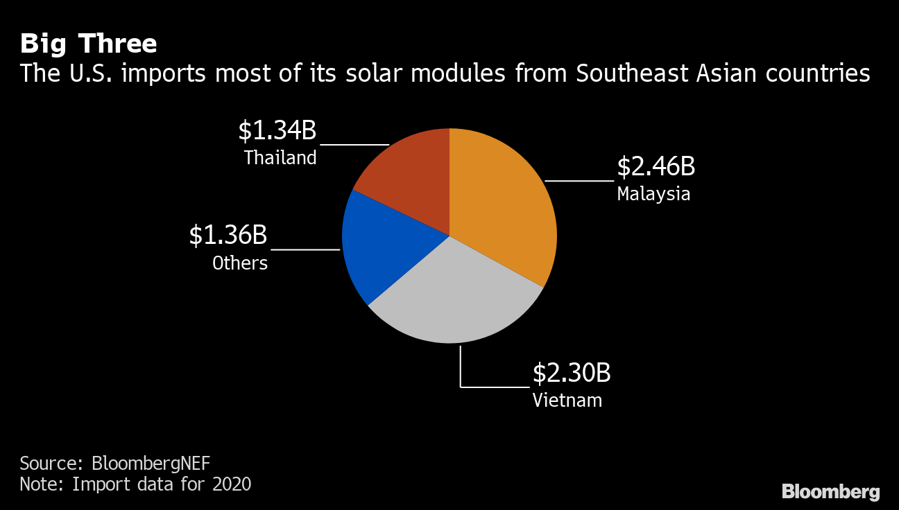 The seizures come amid a new push by some U.S. solar manufacturers to extend tariffs to China-linked factories in Vietnam, Malaysia and Thailand, the U.S.’s largest panel suppliers. Together the developments threaten to disrupt the U.S. solar market, potentially jeopardizing Biden’s goal of a carbon-free power sector by 2035.