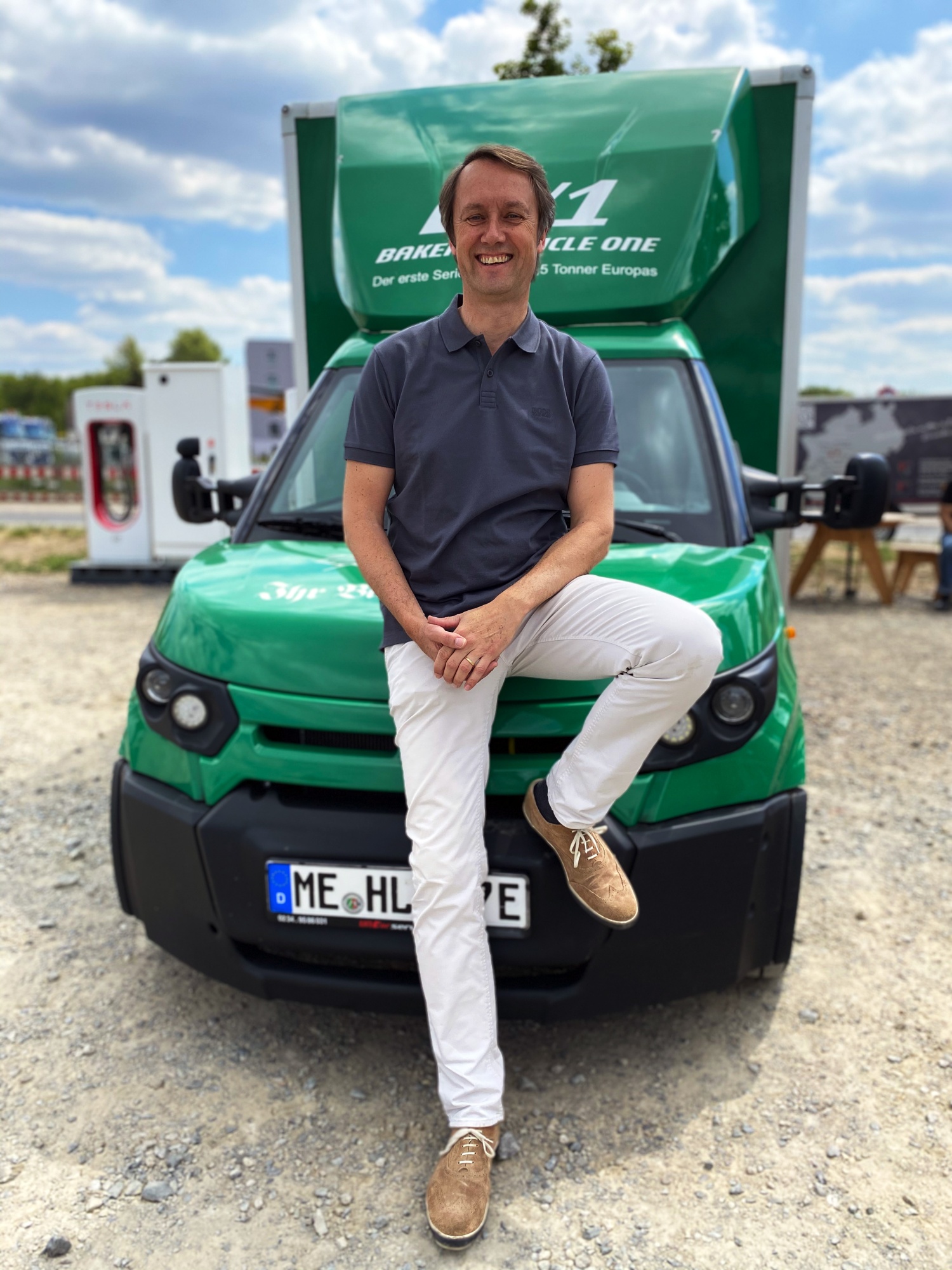 Roland Schueren with one of his bakery’s electric delivery vans.Source: Roland Schueren
